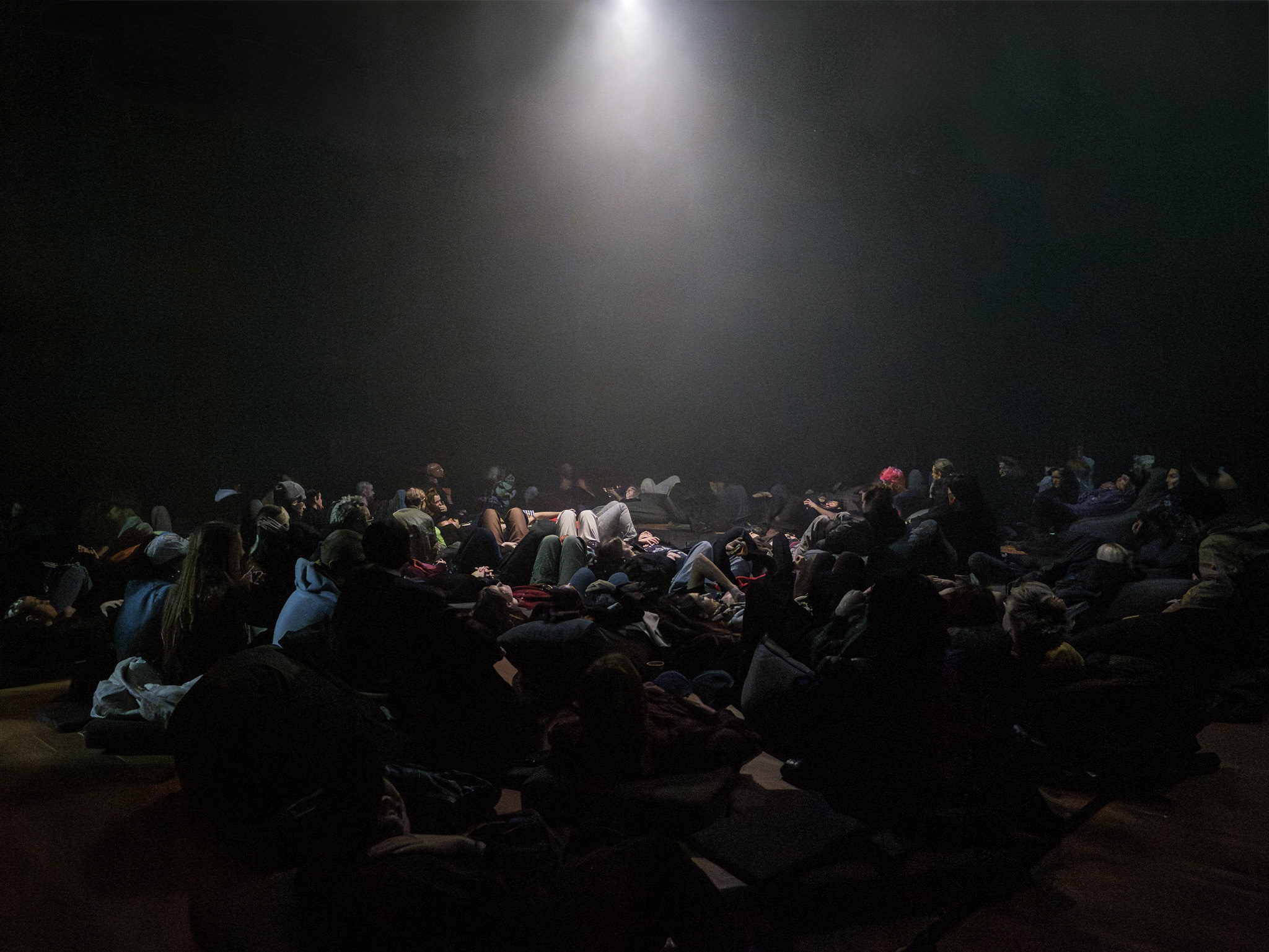 SONIC ENERGETICS is an experiential installation by low-frequency sound artist Stefanie Egedy. Each edition unfolds as a collective yet introspective session, where a continuous field of low-frequency sound and dimmed light invites participants to listen with the body.
